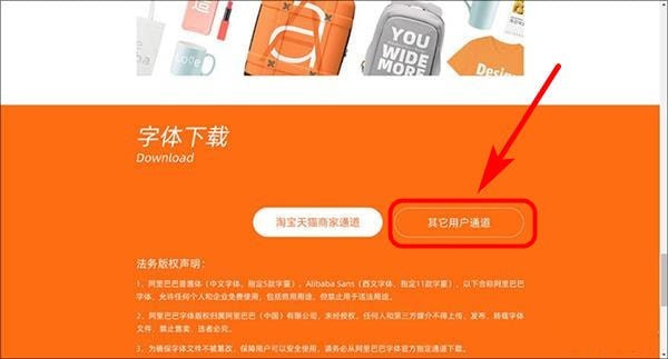 其中“淘寶天貓商家通道”是針對阿里巴巴商家的,大多數小伙伴只要點擊“其他用戶通道”,即可直接下載到字體文件。