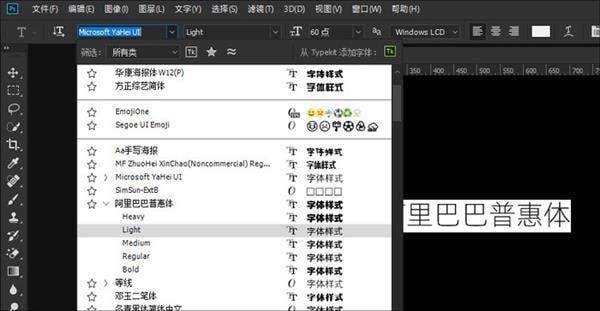 字體安裝完成后,即可在PS及其他軟件中看到,點擊即可使用。根據軟件的不同,可選擇不同的字形。