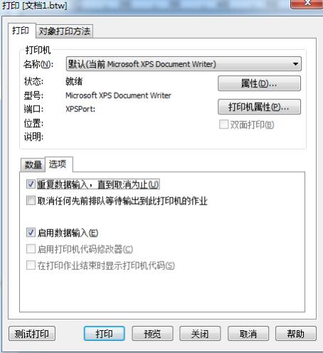 在菜單欄中單擊打印按鈕,點擊“選項”——“重復數據輸入,直到取消為止”,如圖。