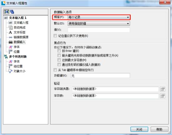 雙擊進入“文本輸入框屬性”界面,點擊“數據輸入”——“頻率”——“每個記錄”,單擊關閉,