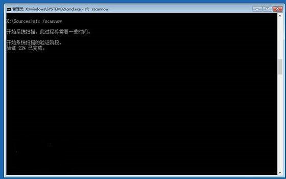 輸入sfc /scannow回車,之后會開始系統文件的掃描驗證,請保持耐心,修復完成、點擊重啟即可。