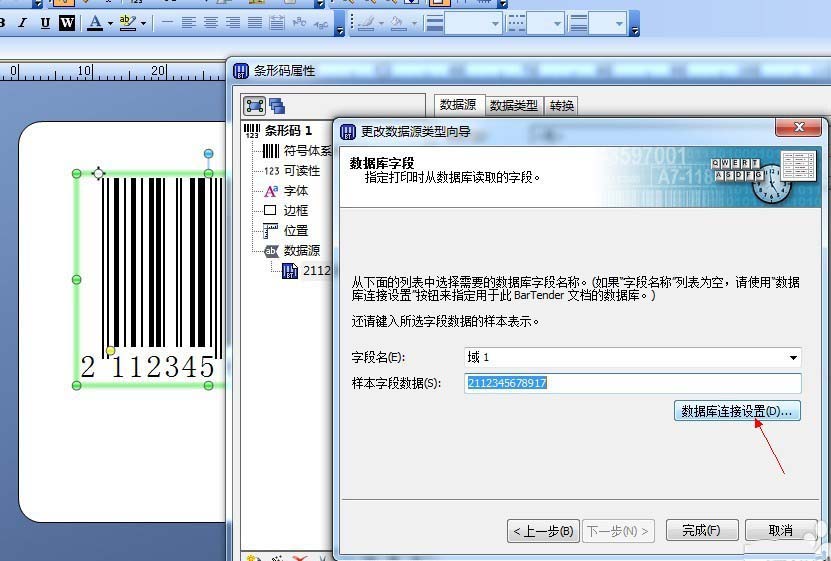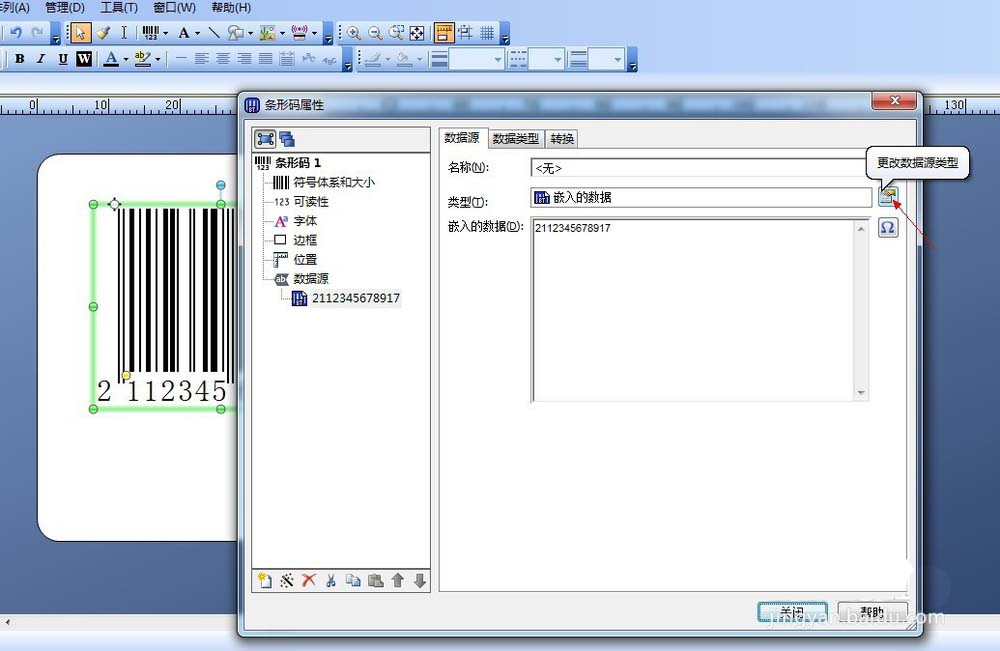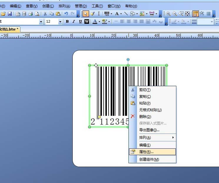 2、選中條碼右鍵屬性或者雙擊條碼打開條形碼屬性窗口。