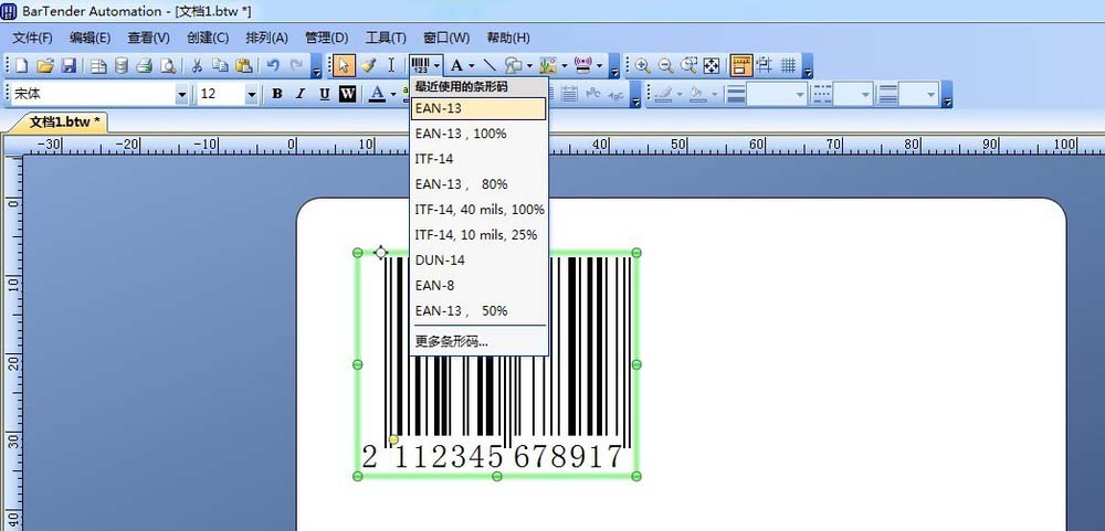 1、首先打開Bartender軟件,建立一個EAN-13。