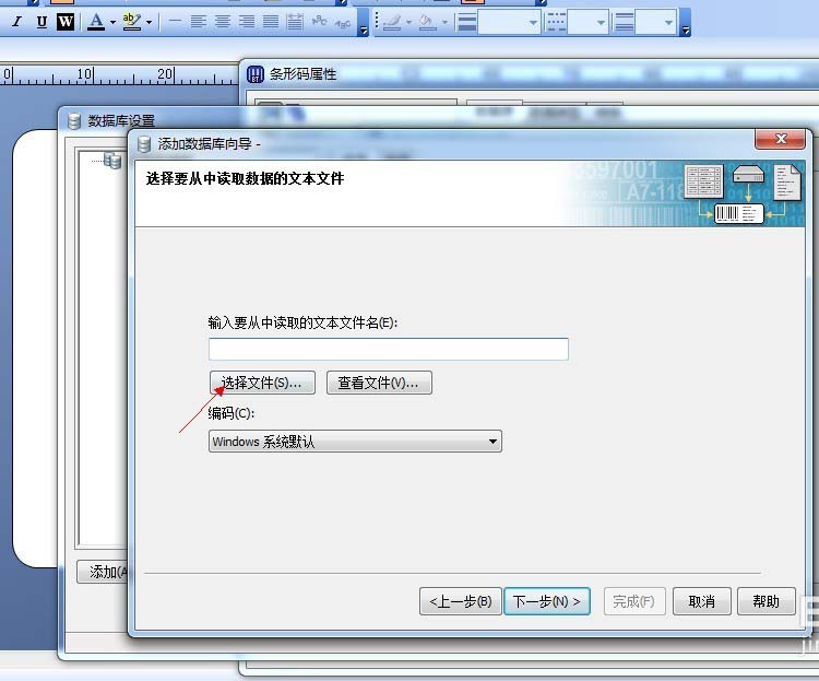 7、數據庫平臺,根據自己條碼的來源來選擇,我這邊選擇文本。下一步。