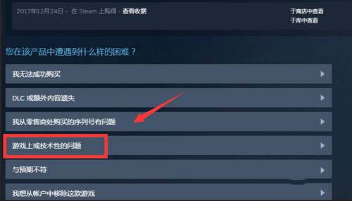 進(jìn)入Steam客服界面,在遇到的一欄選擇【游戲上或技術(shù)性的問題】→【我有其他問題】→【聯(lián)系游戲客服】。