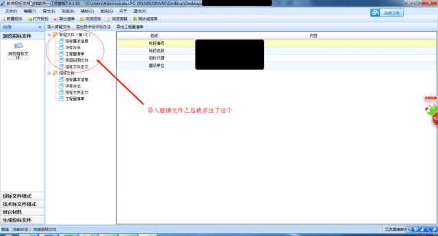 3.之后就來到了這里的界面(出現這個界面說明導入招標文件已經成功了),如下