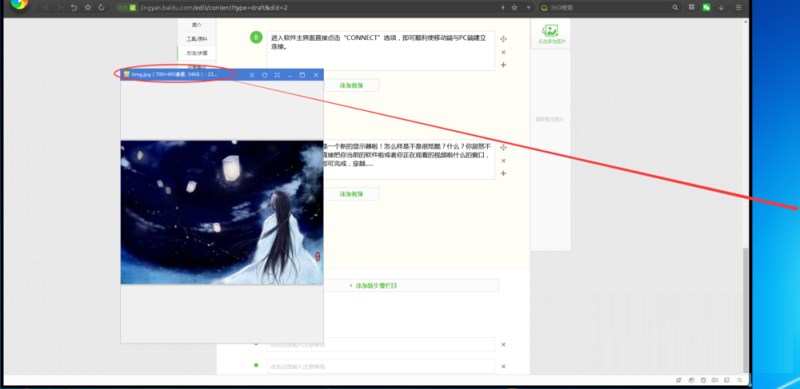9、此時我們移動端就是一個新的顯示器啦!怎么樣是不是很炫酷?什么?你居然不知道怎么用???直接把你當前的軟件啦或者你正在觀看的視頻啦什么的窗口,直接拖出屏幕外。即可完成,穿越.....