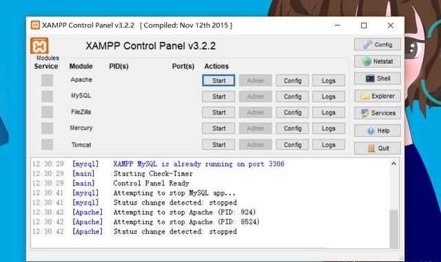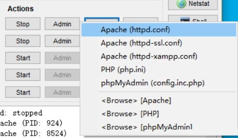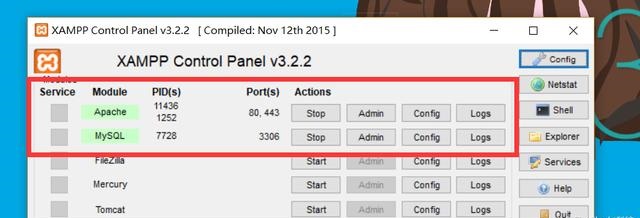 第二步,我們啟動MySQL、Apache,點擊Start即可啟動,如果啟動失敗,那就說明端口被占用了,解決方法:將占用端口的任務關閉即可,使用過程中發現VMware可能會占用80端口,第二種方法,可以自己更改啟動的端口,具體方法如下:
