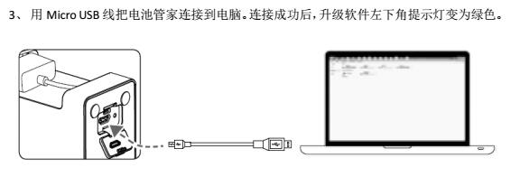 3、用Micro USB線把電池管家連接到電腦。連接成功后,升級軟件左下角提示燈變為綠色。