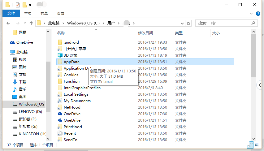 2,AppData這個文件默認是隱藏的,所以你需要在文件夾選項里點擊查看,勾選顯示 隱藏文件、文件夾,這樣就可以看到AppData了!