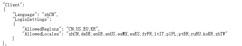 4,修改Client語法下的AllowedRegions區域,
