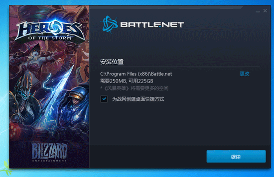 步驟2:進(jìn)入安裝頁面,您可以選擇戰(zhàn)網(wǎng)客戶端安裝路徑,選擇[繼續(xù)]。