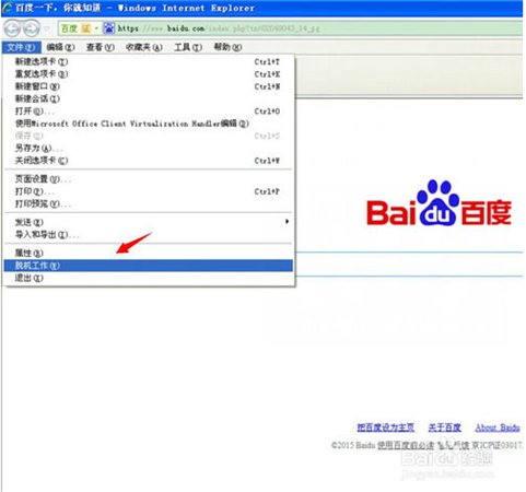 點(diǎn)擊打開瀏覽器中的文件選項(xiàng)后,從它選項(xiàng)下“脫機(jī)工作”選項(xiàng),并查看這個(gè)選項(xiàng)的前面是否打√,如果點(diǎn)擊取消。