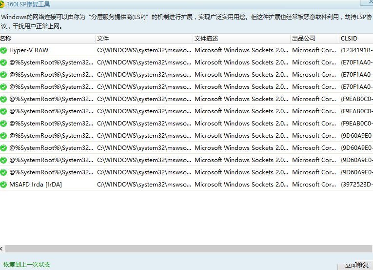 3、進(jìn)入后選擇“立即修復(fù)”出現(xiàn)提示后選擇“確定”當(dāng)然我們還可以選擇“恢復(fù)到上一次”