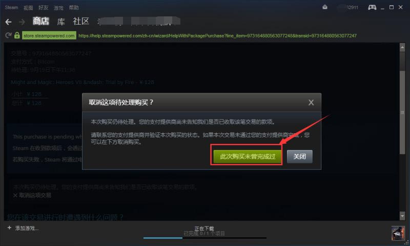 steam怎么取消支付失敗的待處理訂單?