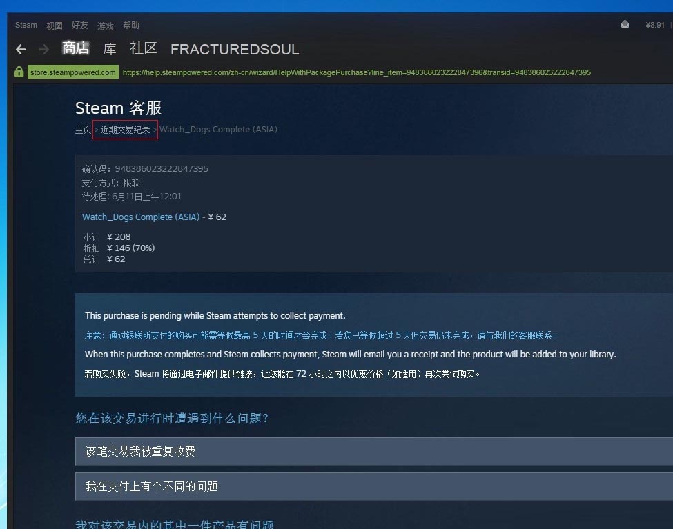 STEAM認(rèn)定付款失敗后,訂單保留72小時(shí)(包括優(yōu)惠)
