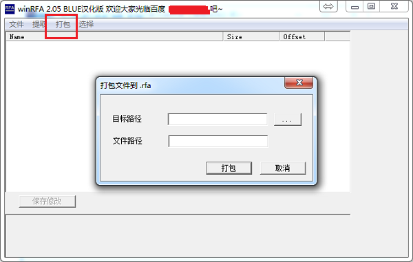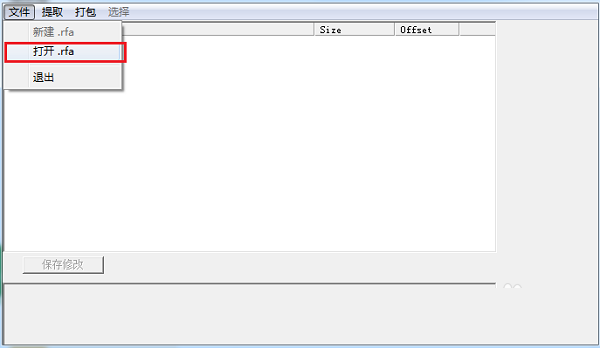 3、第三步進去winrfa軟件之后,可以看到主要有是三個功能打開rfa文件,提取mod文件夾和打包文件,如下圖所示: