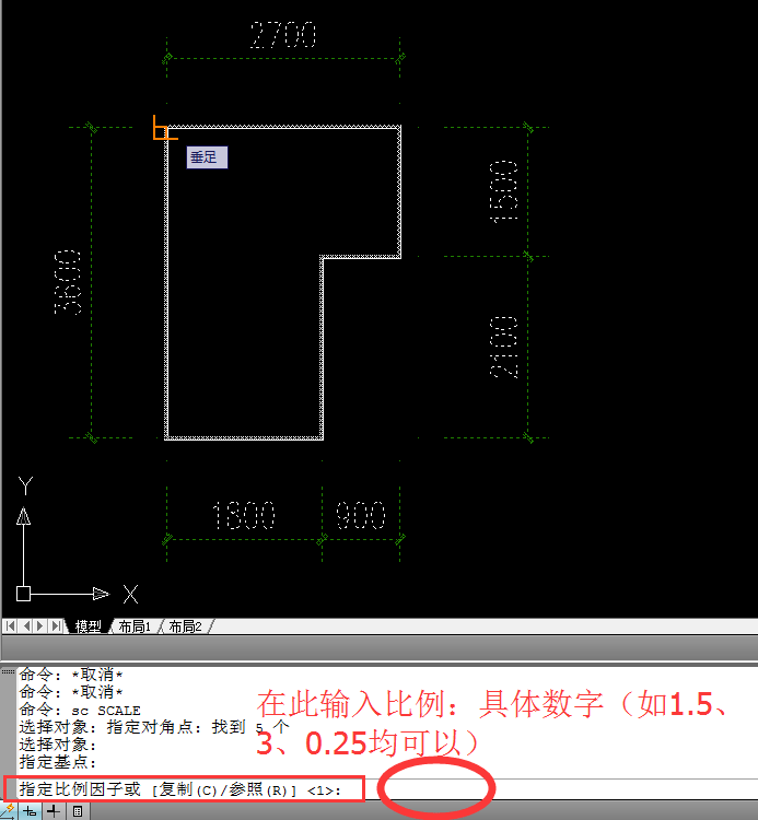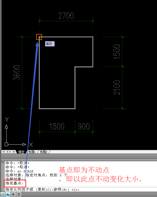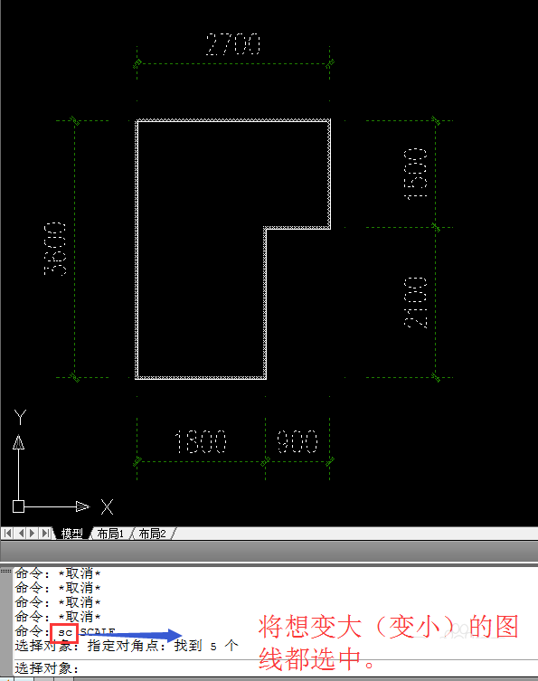 2、SC然后空格------》鼠標左鍵全部選取想縮放的圖------》指定縮放的“基點”