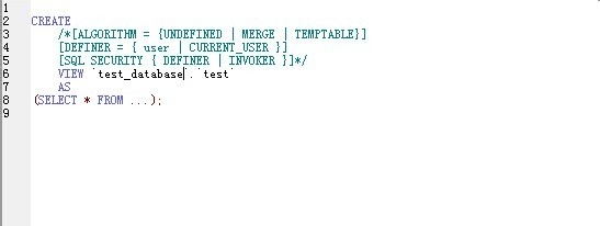 6、在create view彈窗中輸入名稱后,點擊創(chuàng)建然后sqlyog自動就給出了創(chuàng)建視圖的sql語句,讀者只需要做一下簡單修改就可以輕松創(chuàng)建了。