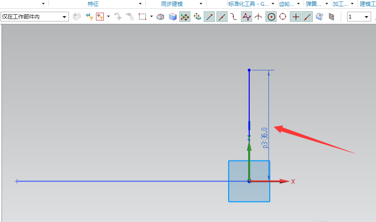 2、以線的端點為基點,創建一個CSYS坐標,等下要根據這個坐標來繪制圖形;