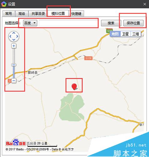 2、來到“設置”界面先打開“模擬位置”,接著通過地圖縮放定位到你要去的位置(如果想精確定位可以直接在輸入框中輸入具體的位置,點擊搜索);