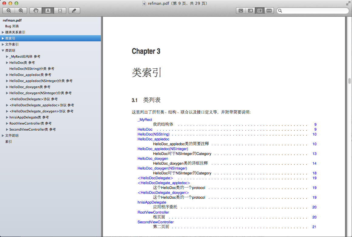設置好了后,點擊“Run”→“Run doxygen”生成最終的.chm文檔,如果設置正確,打開后是全中文的了。