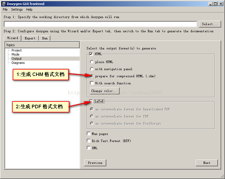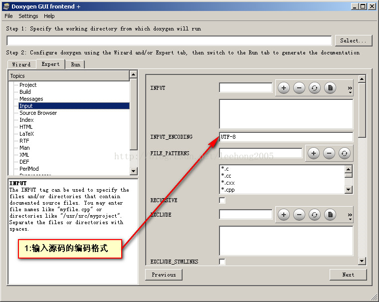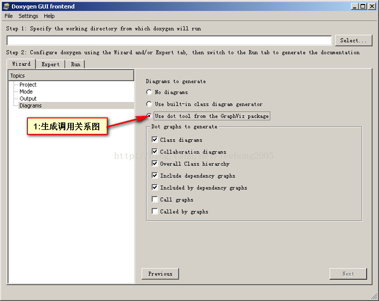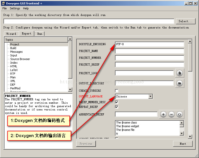 1,Doxygen工作目錄,就是用來存儲配置文件的目錄。