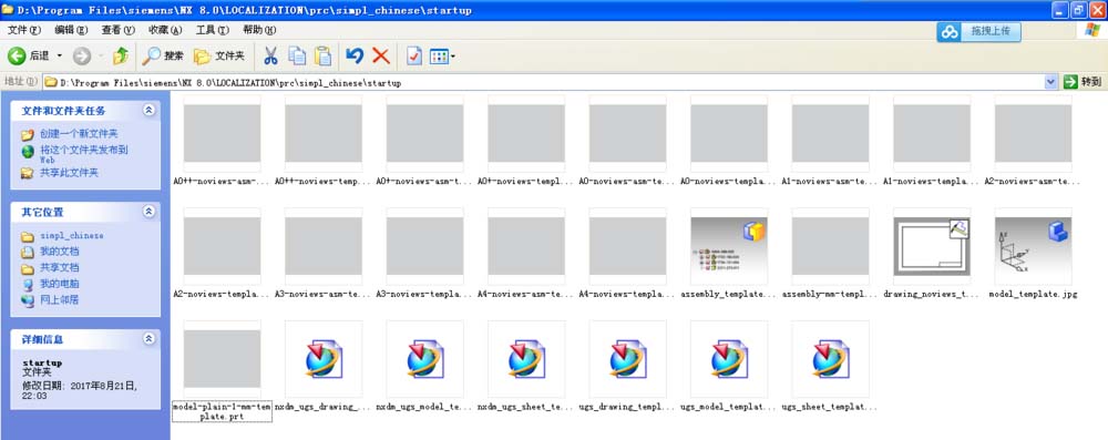 2、但是下次再打開UG還會變為橘黃色,如何能夠永久改變顏色呢?首先我們找到UG安裝文件,D:/Program Files/siemens/NX 8.0/LOCALIZATION/prc/simpl_chinese/startup,找到這個文件夾。