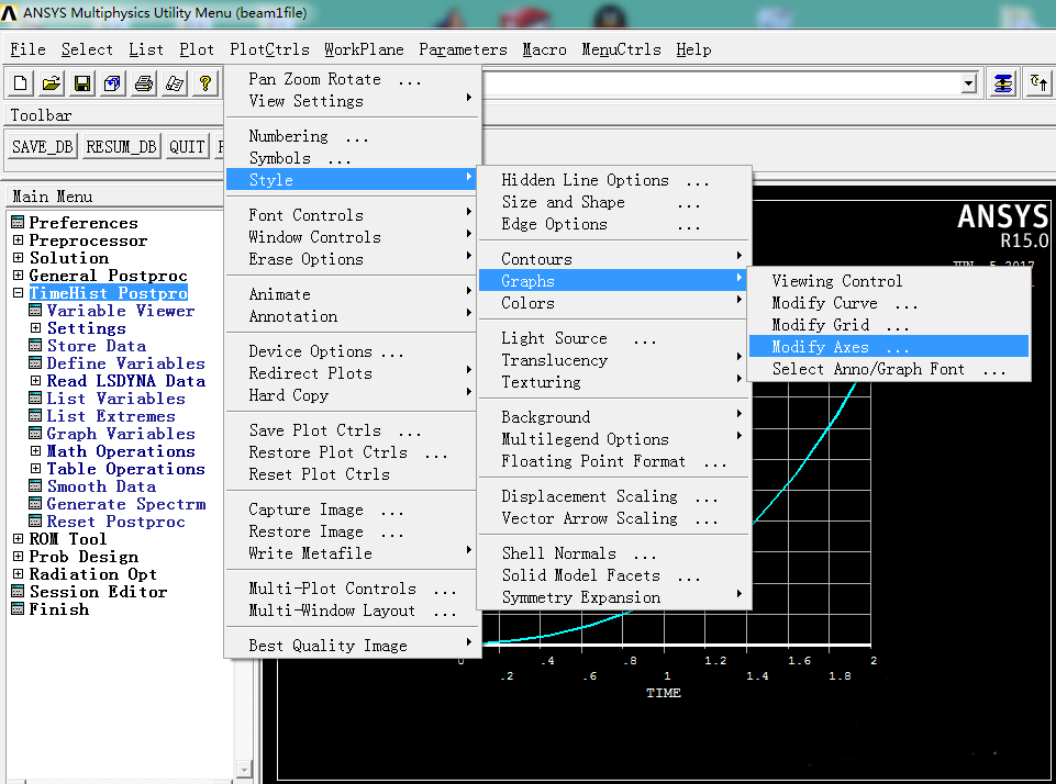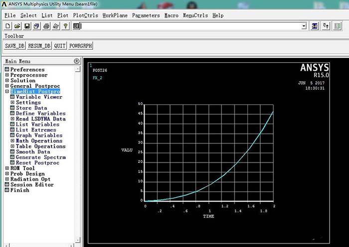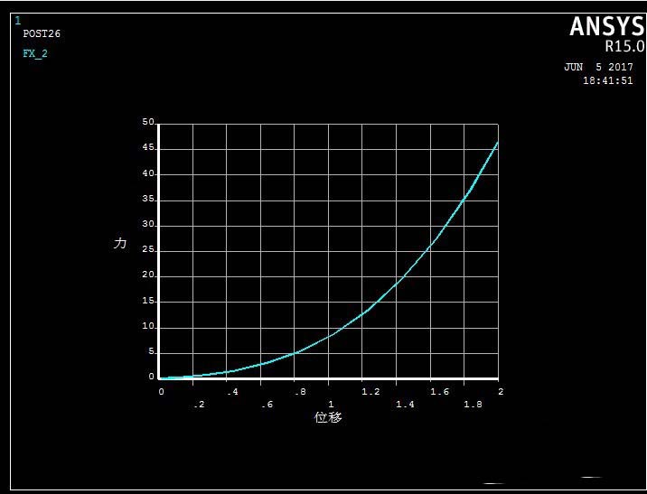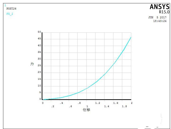 3、接下來在后處理中繪制該結構的力-變形曲線,Ansys默認的坐標標簽名稱為,X-TIME,Y-VALUE,如圖所示
