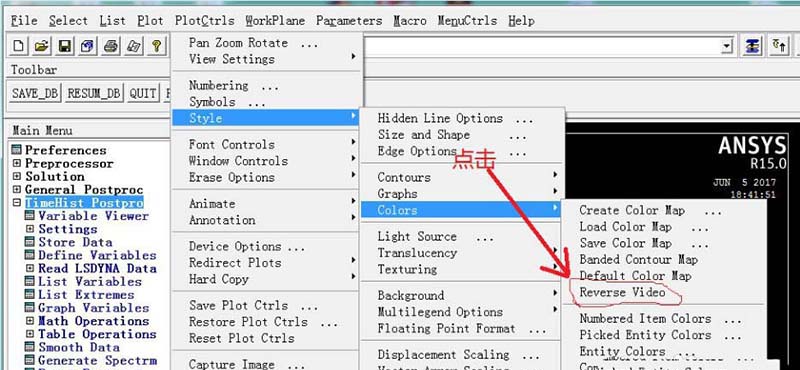 2、依次將鼠標移動到PlotCtrs-Style-Colors-Reverse Video,然后點擊Reverse Video,可以看到窗口背景已經由原來的黑色變為白色背景顏色了,如下圖