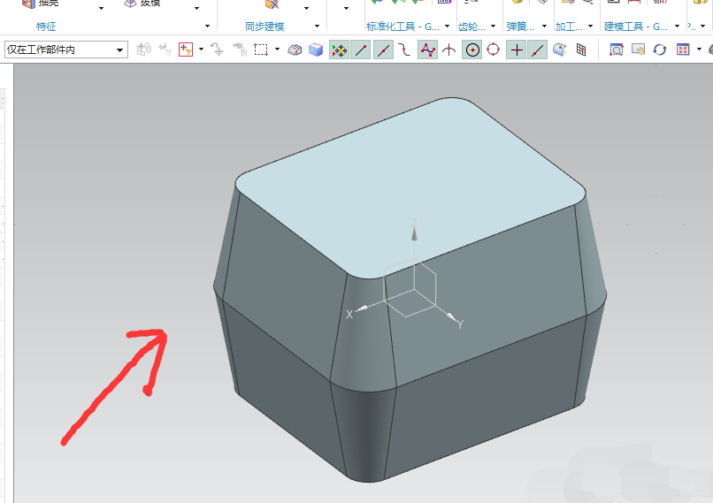 2、使用邊倒圓角命令,為剛繪制的四方體的四條邊線增加倒圓角特征;(其目的是為了使體的面存在相切,以便等下快速地選擇)