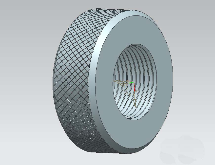 7、把調節螺母毛胚和剛才做的掃掠零件 使用布爾操作中求差,求差后毛胚表面生成一個細長的V型面(其實就是三角形的角在滾花表面沿螺旋線切出來的痕跡)