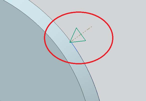 4、繪制一個三角形,使其一個角深入表面一點點,如果現在還不太明白我說的,沒關系,繼續往下看就會明白了。這個三角形是用來做掃掠命令的輪廓草圖