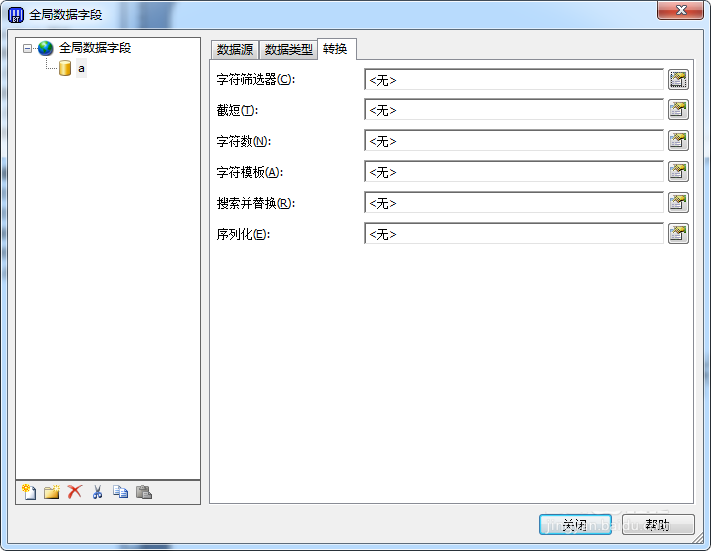 3、單擊完成,則會彈出全局數(shù)據(jù)字段屬性頁。在轉(zhuǎn)換屬性欄,小伙伴們可以進行多種設置,比如用的比較多的序列化設置。