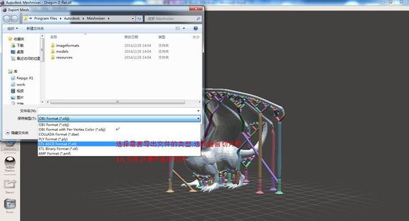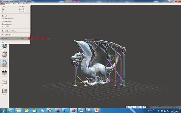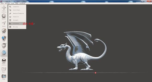加載需要編輯的3D模型,此處我們加載Dragon-Z-flat.stl,需要注意的是meshmixer只能加載.obj .ply .stl .amf文件。