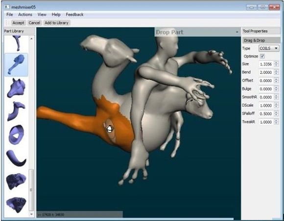 命令1meshmix ,堪稱招牌功能了,里面集成了許多常見的特征,例如人手/熊頭/人頭/貓耳等,你可以盡情發(fā)揮你的創(chuàng)意,一個(gè)超級先進(jìn)的火星人有可能就誕生在你的鼠標(biāo)下了.
