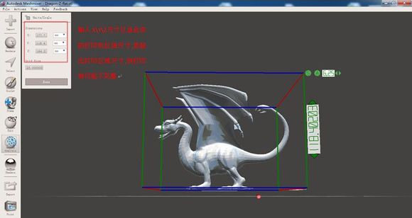 第三步:適當(dāng)調(diào)整模型大小以適應(yīng)3D打印機(jī)的打印尺寸,點(diǎn)擊analysis>units/scale后出現(xiàn)下圖所示界面,輸入您想打印的模型大小,注意后面單位為mm,