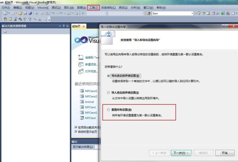 1、【嘗試方法一】初始化Microsoft Visual Studio軟件,還原默認值