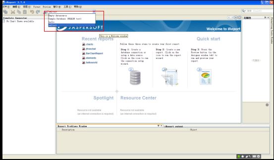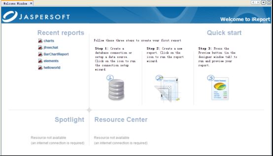 客官您瞧見,用戶界面上的“Quick start”沒?按照圖中表示的1、2、3去做,就基本能搞清楚ireport是什么道道!