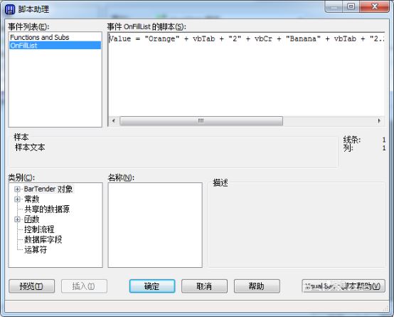 1、在BarTender 10.1中,使用 Visual Basic 腳本源可編寫基于自定義腳本填充列表的程序。