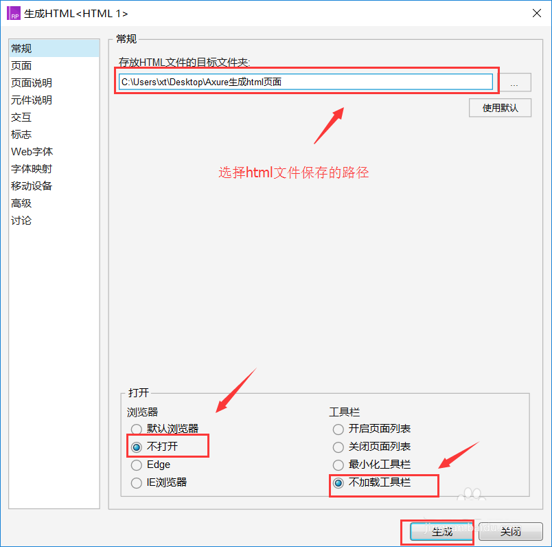 3、選擇html文件保存路徑,然后點擊“生成”按鈕