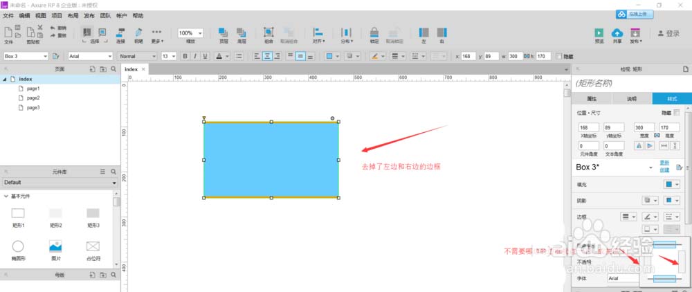 當我們用Axure畫矩形的時候,只想要保留2條邊框或是3條邊框,又或者是只想保留一條邊框,這時候怎么做呢?請看下面的詳細講解。