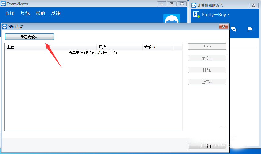 6、此時我們在teamviewer中就可以點擊新建會議了,軟件右側顯示了計算機和聯(lián)系人。