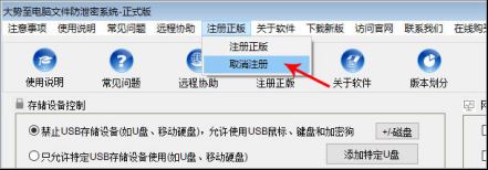 軟件界面上端有“取消注冊”按鈕,切勿私自點此選項,點擊后無任何提示信息,直接取消注冊變回試用版,并且無法通過原來的注冊號重新注冊。如果需要取消注冊,須聯系大勢至公司。
