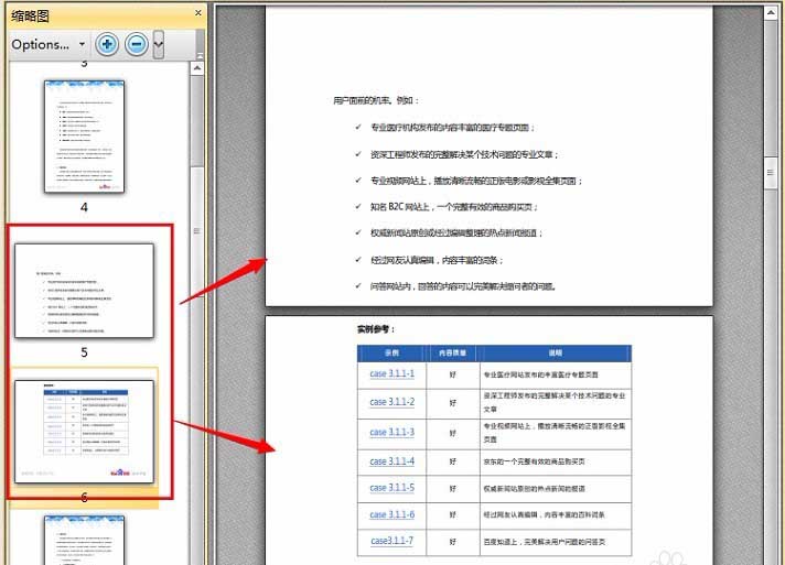 1、先用編輯器打開需要操作的PDF文檔,在縮略圖中找到需要操作的頁面,并點擊切換到該頁面。