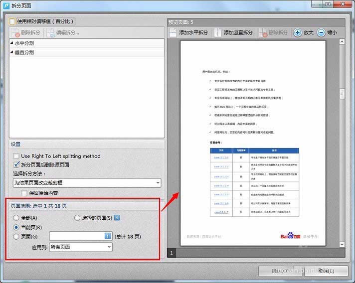 3、首先在對話框最下方的拆分范圍中,選擇需要拆分的頁面。