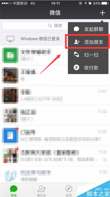 點擊右上角的“添加朋友”進入到搜索頁面。