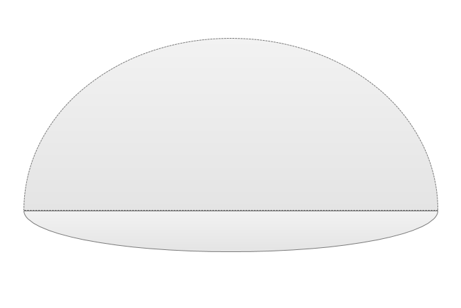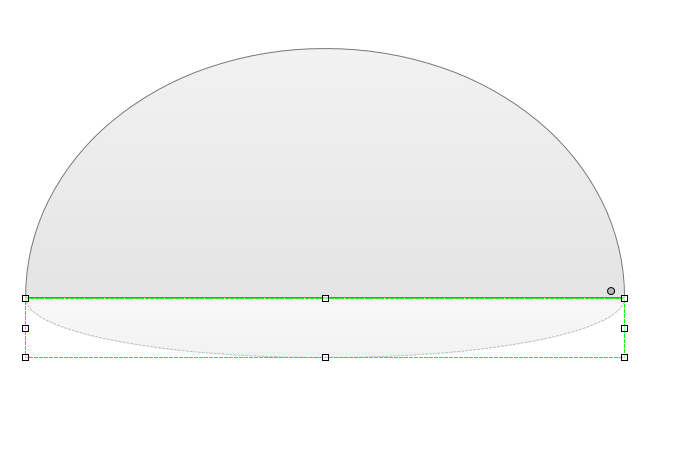 3、再在半圓形下方拖一個半圓形,寬度跟上方的一致,但是高度比上方的小,如下圖所示: