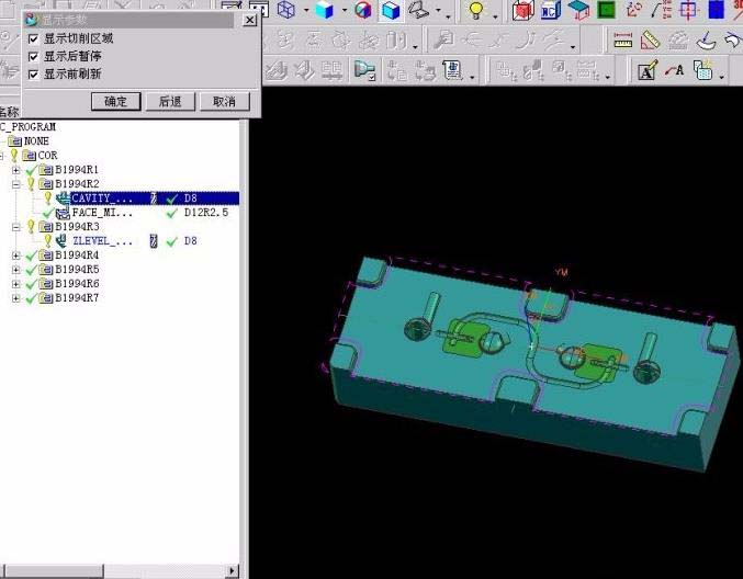 一般來講,UG開粗優先使用跟隨部件,但是此方式跳刀多,' B9 I1 i J4 l& A! P6 x4 {, T8 u* U" [7 U. H5 g刀路看起來實在扎眼。不過利用干涉面可以很好解決這個問題。