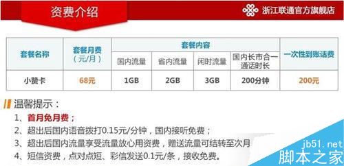 京東小贊卡套餐費每月68元,6GB流量包括1GB國內流量、2GB省內流量、3GB閑時流量,國內長市合一通話時長為200分鐘,首月免月租費。目前該套餐是由浙江聯通率先推出,至于中國聯通其他地區是否會推出該套餐目前還不得而知。